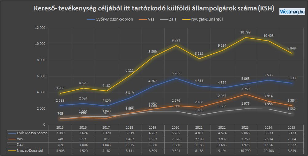 - Országos szinten stagnál, Nyugat-Dunántúlon pedig csökken a vendégmunkások száma.