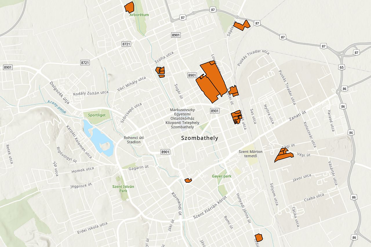 A térképet bogarászva az derül ki, hogy zömüket egykori ipari vagy katonai területek alkotják.