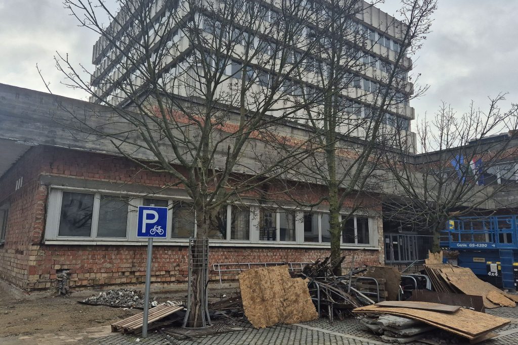 Néhány nappal ezelőtt jártam arra, és némi meglepetésre azt vettem észre, hogy sokkal nagyobb a rombolás, mint amire számítani lehetett: a járda és a lábazat után az első két szinten teljesen leverték a vakolatot.